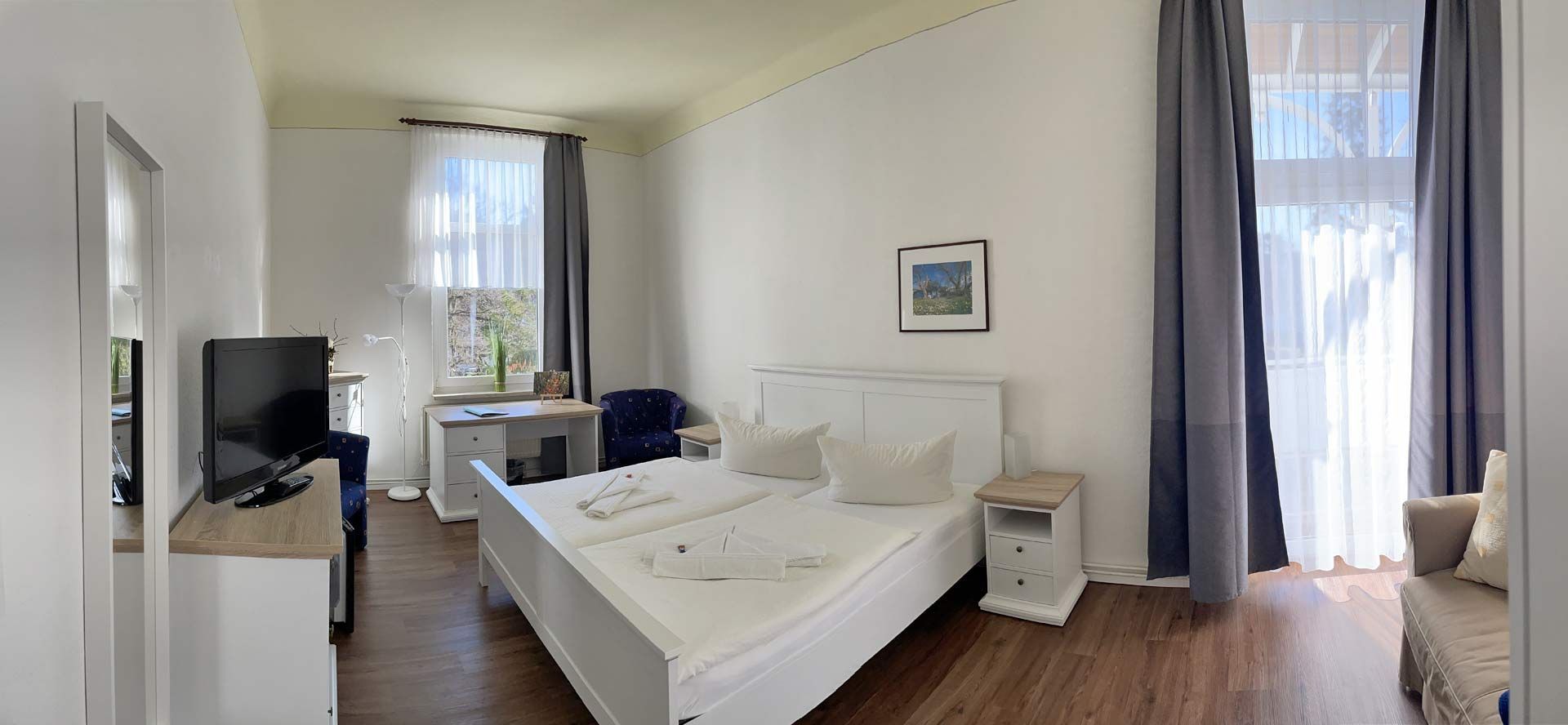 Sie erwartet ein geräumiges Wohn-Schlafzimmer und ein Balkon.
